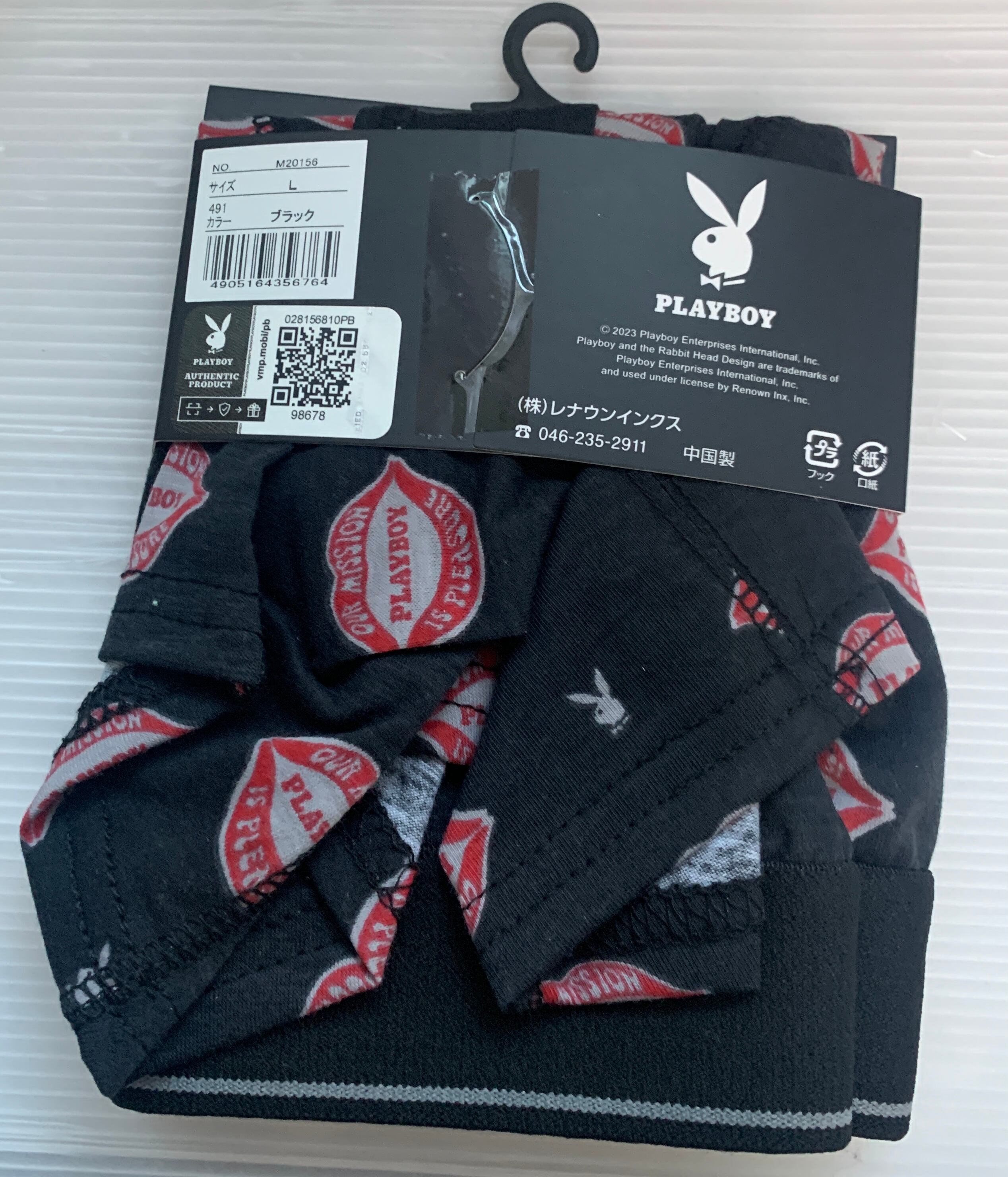 PLAYBOY ボクサーブリーフ 前開き ストレッチ ソフトゴム ブラック L